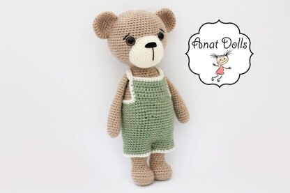 The pattern is written in English. Size: The Bear is about 28cm tall (11inch). This pattern is easy to follow but requires basic crochet knowledge. Skills required: • Working in a spiral (in the round) • Chain stitch • Back loop only • Increasing • Decreasing • Slip stitch • Fasten off Supplies: • 3,0 mm crochet hook • 1 pair brown 14 mm safety eyes toy • Black embroidery thread • Soft stuffing • Yarn needle