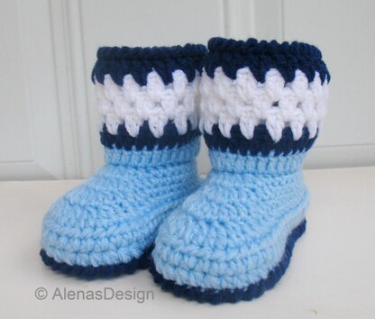 You are welcome to make my Crochet Toddler Booties which are 100% acrylic material for both warmth and softness. Contrasting color patterns make this booties look cute and adorable while keeping your child’s feet nice and toasty. Includes pattern for the Blue Toddler Booties in four sizes: