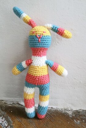 This cute crochet bunny is easy to make and suitable for babies and toddlers as it has no removable parts. The bunny pattern has easy instructions using both UK and US terms and can be made using under 40 grams of oddments of DK /light worsted yarn.