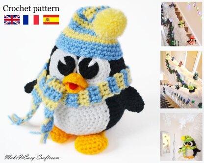 Crochet Christmas Penguin Pattern – Bannister & Staircase Decoration, Festive Home Decor (PDF)