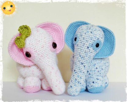 This cute little elephant is my own design, when finished measure's 6" long and 7" high The pattern is quite straight forward I recommend it as an advanced beginner/intermediate pattern.The instructions are detailed and easy to follow if you know the basic stitches and techniques used to make amigurumi. Lots of pictures are included in the PDF. The pattern is a PDF and you will need Adobe Reader to open it.I will be happy to help you along if you have any questions when making it.