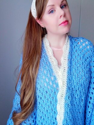 This crochet cardigan is slightly oversized. This is a very inclusive pattern, with sizes ranging from S to XXXL.