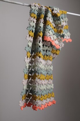 This is now officially my favourite scarf, I love the delicate flower detail and the muted colours, it also has the benefit of being very warm, so it is practical too, it also looks great with my parker! This is a little bit tricky to get started so is probably not suitable for a beginner but once you get started the pattern repeat is 4 rows so is easy to memorize. There is a video link on the pattern too, I hope that it will help the rather wordy pattern make sense. There is no chain with this stitch pattern and you can easily make it as wide as you like, every two rows of crochet forms one row of flowers.