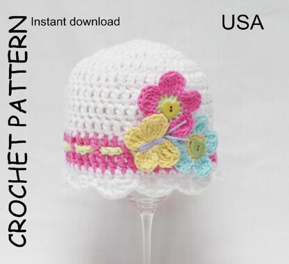 THE FLUTTERBY FLOWERS BABY HAT PATTERN