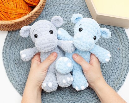 This amigurumi hippo is made using soft chenille yarn, resulting in a cuddly and huggable toy, perfect as a handmade gift for kids, baby showers, or nursery décor.