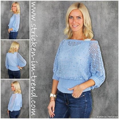 This summer jumper is worked sideways – no increases or decreases, just easy stitches and a flattering fit.
