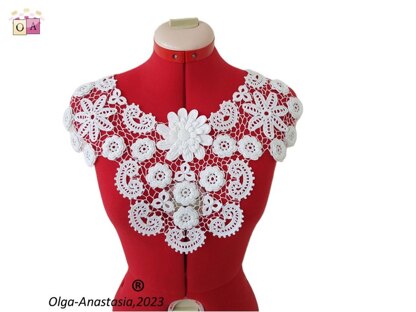 Crochet lace collar "Christmas". Modern crochet Irish lace pattern . A detailed pattern for all crochet motifs - a graphic diagram, a photo and a verbal description of each crochet row. PDF file for 60 pages Design work by Starostina Olga.