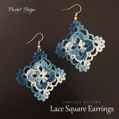 Crochet Lace Square Earrings boho style- crochet pdf pattern - Crochet earrings pattern - Crochet jewelry - Crochet earrings - Granny Square
