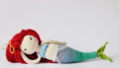 This Sweet mermaid pattern is my own design, when finished he measure's approx 16" tall ( when using recommended yarn and hook ) The pattern includes instructions for the little fish too!