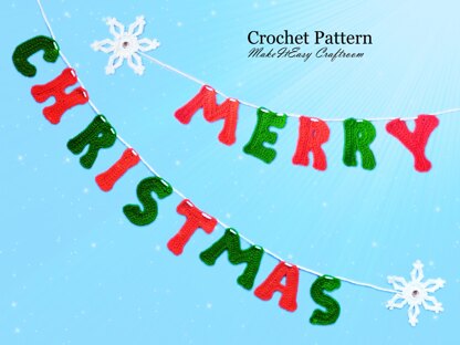 Crochet ‘Merry Christmas’ banner pattern - festive crochet letters and snowflakes garland