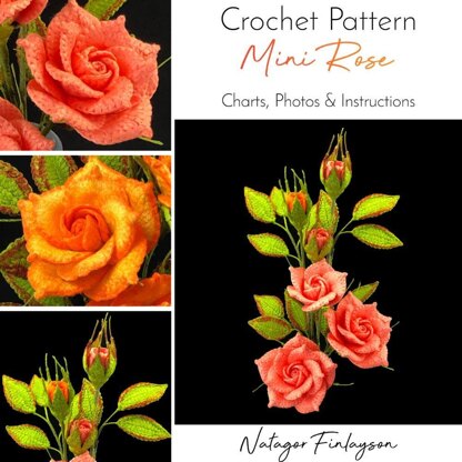 3 Size Roses in 1 Pattern: In this Mini Rose Crochet Pattern are diagram (stitch) charts, photos, and detailed assembly instructions, in English in American Standard Terms, for a crochet miniature rose. It has step-by-step photo guides that will show you how to crochet and assemble this flower in its different sizes, and any leaves. It contains 44 pages in a downloadable PDF document format.