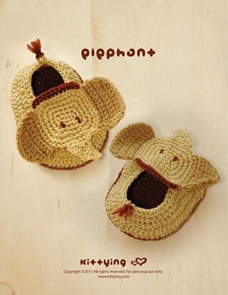 CROCHET PATTERN - Elephant Baby Booties Elephant Preemie Newborn Socks Animal Shoes Elephant Baby Slippers Elephant Applique (EB01-B-PAT)
