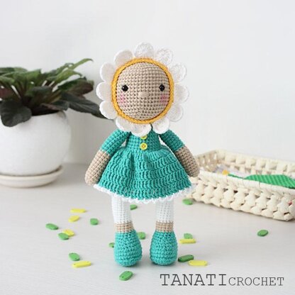 CROCHET PATTERN "DOLL - Chamomile" – size cm 29 (in 11), if using sport weight yarn (12 wpi, YarnArt Jeans, Alize Cotton Gold).