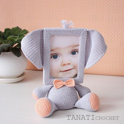 Photo Frame ELEPHANT – size 25 cm (10 in), if using fingering weight yarn (4 ply, 14 wpi, 1 : Super Fine).