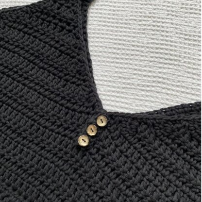 Light weight and floaty The Carme crop top is the perfect project to cast on this summer. The cropped length and v neck collar give the top a sexy lingerie look that is perfect for dressing up or down. The easy repetitive stitch pattern makes this the perfect project for beginners and advanced makers alike. Level; EASY Pattern is written for sizes XS-5XL Yarn used is Yarn & Colours which is a Cat 4 Med weight cotton yarn and a 4,5mm (US 7) hook. Yarn that has at least a 10% cotton fiber should be used to avoid stretching. All instructions are written in English using US crochet terms. Techniques included in the pattern; Chain, double crochet, decreasing, single crochet.