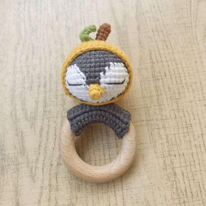 A sweet addition to crochet stuffed animals patterns, this penguin rattle features a smooth wooden ring and gentle rattle. It’s a top choice for baby teether crochet patterns lovers.
