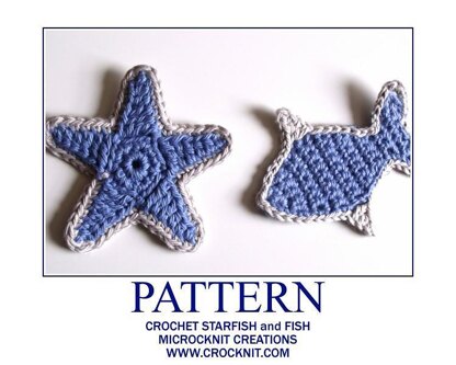 Quick and easy motifs for a fish and five-point starfish. Choose your yarn and hook size and make it with one colour or two.