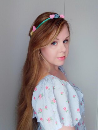 This crochet floral crown hair ribbon is very easy to crochet. This pattern is 6 pages long, and features lots of descriptions, photos and a link to the video tutorial.