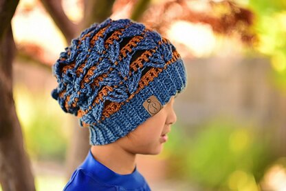 The Willow Slouch Beanie is crocheted using worsted weight yarn.
