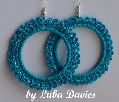 Pattern for adorable crocheted lacy earrings-hoops with beads.