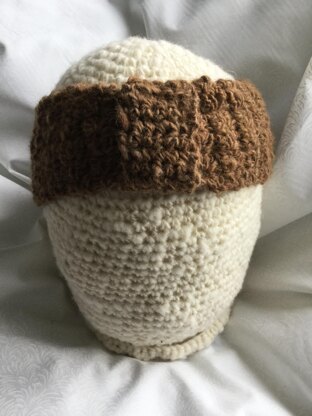 This cute little headband is ideal, as it is stretchy, pretty and flexible. Knot up; knot down; knot to one side. It’s entirely up to you. I have made it in acrylic yarn, and alpaca (pictured). Make it in different colours and different yarns for variety. Acrylic for fashion, and alpaca to keep your ears warm. It may be worn over or behind the ears.