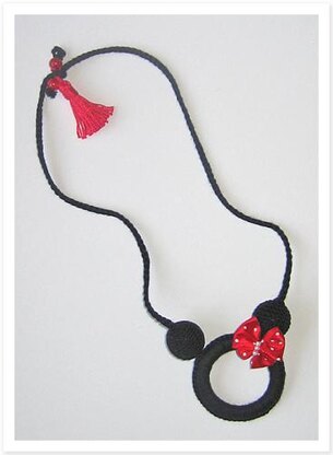 A small amount of black baby sport yarn, a plastic curtain ring, crocheted beads and satin bow magically transformed into this fun necklace with easy adjustable length. Just perfect as a gift idea, for party or other events, you name it ;)