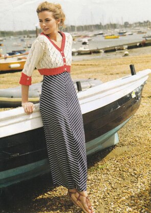 This is a pattern for a Cropped Diamond Lace Cardigan, originally published in Knitting magazine. It is a cropped shape with a diamond lace stitch on the main body, and a single vertical line of the same pattern on the sleeves, the rest in stocking stitch. The edges are in rib in a contrasting colour. The sleeves are 3/4 length with turned back cuffs. Photos Laurel Guilfoyle for Knitting magazine.