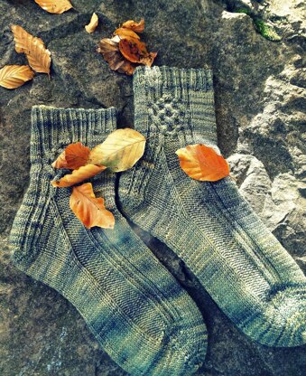These gorgeous, variegated top-down socks feature a cluster of cables along the sides which can be modified to adjust the height of the socks. Customize the length and style of your socks by playing with the number of cable repeats.