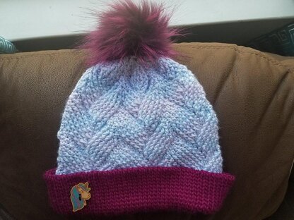 Create a woven textured look without actually crossing cables in the Cross-Country Beanie, Ski-Slouch, & Headwarmer!