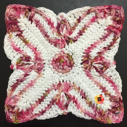 Made by the beautiful handdyed soft cotton acrylic yarn by Indonesian dyer Qiuknit. The yarn's colors inspired the flowery theme of the squares. Cross My Tulip, Cross My Rose, Cross My Lotus.
