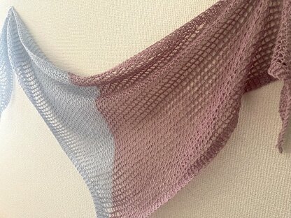 Crosswind Veil is a light and airy triangle shawl that floats like a veil caught in the breeze. Featuring a soft mesh lace pattern and a gentle two-color transition, it evokes movement and delicacy with every stitch. Worked in fingering-weight yarn with simple increases and decreases, this piece is both meditative to knit and graceful to wear. The size is easily adjustable by repeating the lace sections.