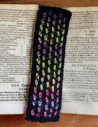 This pattern is a fun little bookmark, and would be an excellent way for someone who has tried double-knitting and wants to get their toes wet with double-knitted lace. It is also a good way to use up some of those inevitable leftovers of yarn from other projects. This pattern will work particularly well with one of your scraps in a solid color, and the other in a brightly variegated yarn. I must admit that this particular pattern came about by me sort of noodling around with the yarn. But however it came about, the end result is both attractive and elegant – and very holey!