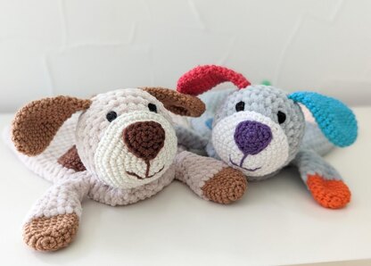 Amigurumi Cuddly Doggy Comforter pattern, written in English, in USA crochet terms.