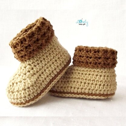 LANGUAGE: crochet booties pattern is written in English, using US crochet terminology.