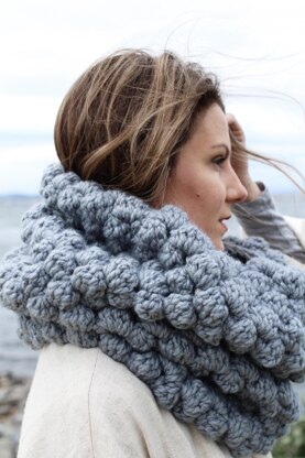 Engulf yourself in squishy bobbles with the delightful Cumulus Cowl. Inspired by fluffy clouds seen from an airplane window, the texture of this neck warmer provides the ultimate cozy warmth.