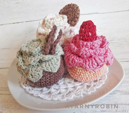 The pattern also requires a small amount of polyester toy filling (fire safety standard / EN71). This means your cupcakes are safe and washable.