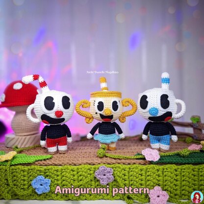 Cuphead, Mugman and Ms. Chalice amigurumi pattern (chibi version)
