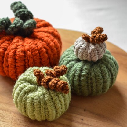 This pumpkin pattern is made flat and then sewed on the top and bottom. The curly vine on the top adds a playful touch to the pumpkin.