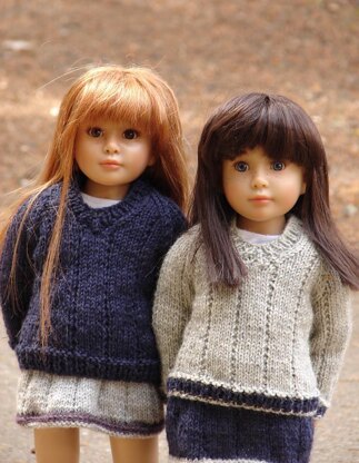 Cur·ric·u·lum ~ A V-neck unisex sweater featuring classic ribbed edges and a featured rib panel stitch throughout, suitable for slim 18” all vinyl dolls like the Kidz ‘n’ Cats boys and girls