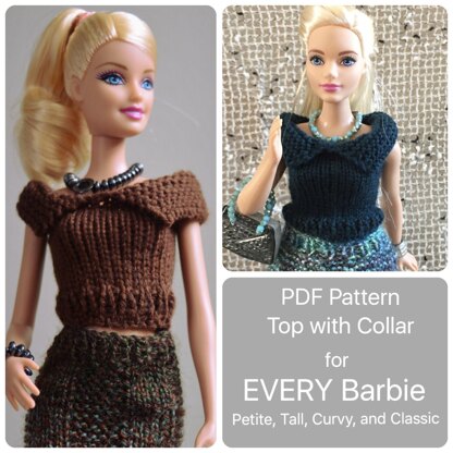 This pattern is written for fashion dolls such as Barbie. It was created for my first grand-daughter. I wanted to document how I made the outfits, so she could knit them for her grand-daughter. It includes instructions for ALL of Barbie's new and existing Body types: petite, tall, classic and Curvy.