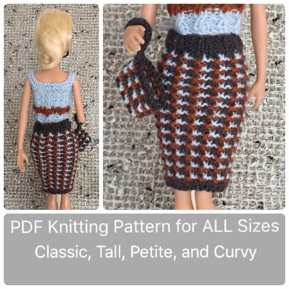 This knitting pattern is for the tweed skirt shown with instructions for ALL of Barbie's body types. The existing Body sizes are: Vintage, Silkstone, Athletic, Made-to-Move, and Classic. I will refer to all of the existing styles from now on as "Classic". That's because they vary only slightly, and one set of instructions will work for all "Classic" body styles. The new body styles recently added were, Petite, Tall, and Curvy.