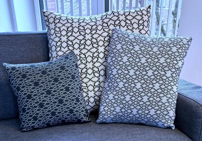 Für unsere neue Wohnung möchte ich Kissen arbeiten. Dafür suche ich überall nach Inspirationen. Eine fand ich an der Wand eines Restaurants mit arabischen Kacheln, auch die Botschaft Saudi Arabiens in Berlin zeigt die in der Region sehr beliebten Stern-Motive. Ich habe versucht, zwei unterschiedliche Sternmuster umzusetzen. Wie gefallen sie euch?