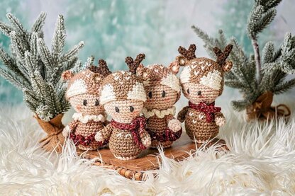 I had so much fun creating the Axolotl Crochet Ami Doll Pattern that I wanted to create a festive set of amigurumi crochet deer dolls. I've fashioned this set for the holidays, but it's very adjustable for any time of year or for a woodland rustic theme.