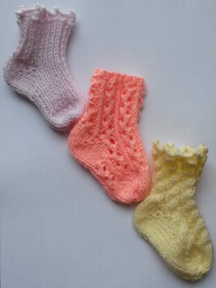 Ribbed with Picot trim, Lacy, and Cable stitch with Picot trim.