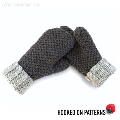 Crochet these snuggly warm mittens with a ribbed double cuff and textured stitch pattern.