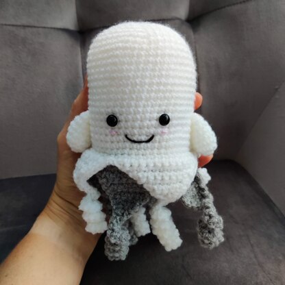 UK Pattern for a cute friendly Halloween Ghost. The pattern contains lots of photos and instructions on how to complete the item. The main stitch is Double Crochet (US single crochet) so it is relatively simple, however I have marked it as intermediate because of the general construction of the item.