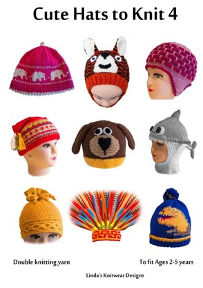 Cute hats to knit 4 - elephant, tiger, dog, dinosaur, shark, Nordic