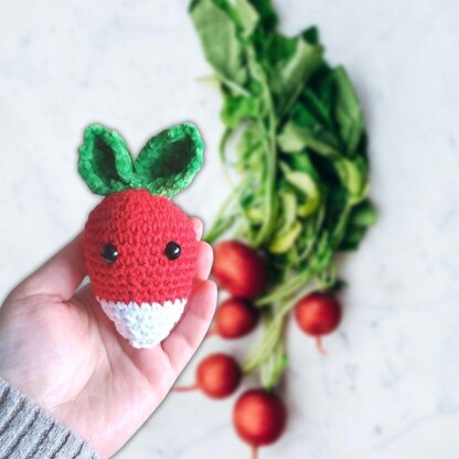 My little crochet radish is made with Bernat Handicrafter Cotton yarn, as well as Sirdar Happy Chenille. This is an intermediate level crochet pattern.
