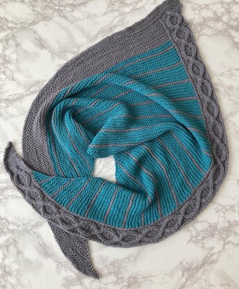 Cycle road shawl is a triangle shawl with cables on the one side.