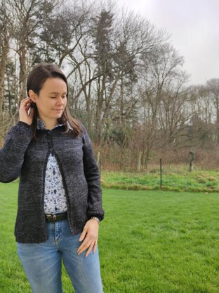 Yarn This cardigan is knit with a yarn of type fingering weight. (Here Eternelle solo of Vilaines yarns col: Les tentacules d’Ursula) Approx. 1030, 1150 (1235, 1395, 1515, 1610, 1695, 1875) m.